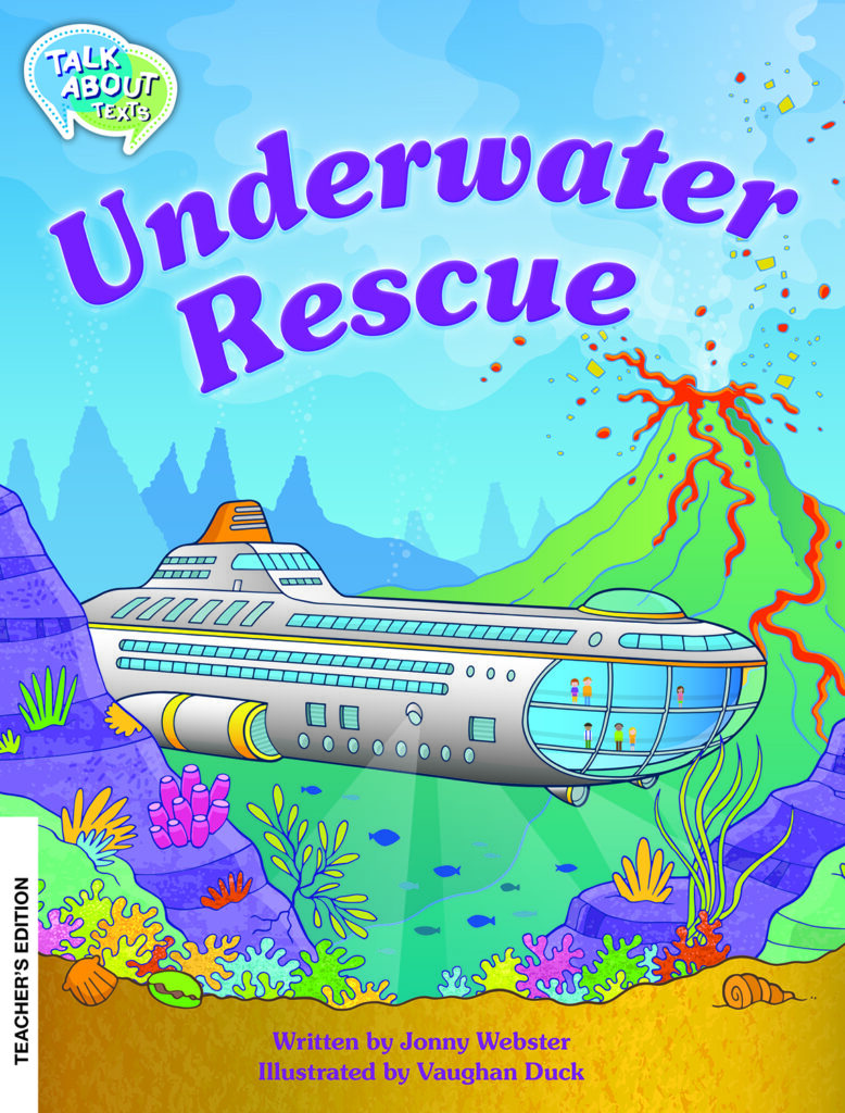 Save precious planning time by using the comprehensive teaching notes in this Teacher’s Edition of Underwater Rescue. This handy resource is discrete, practical and easy to use. Oral language strategies and vocabulary instruction are embedded throughout the questions set around the edge of the student book pages, providing everything you need for an effective guided reading session using the Talk About Texts approach.